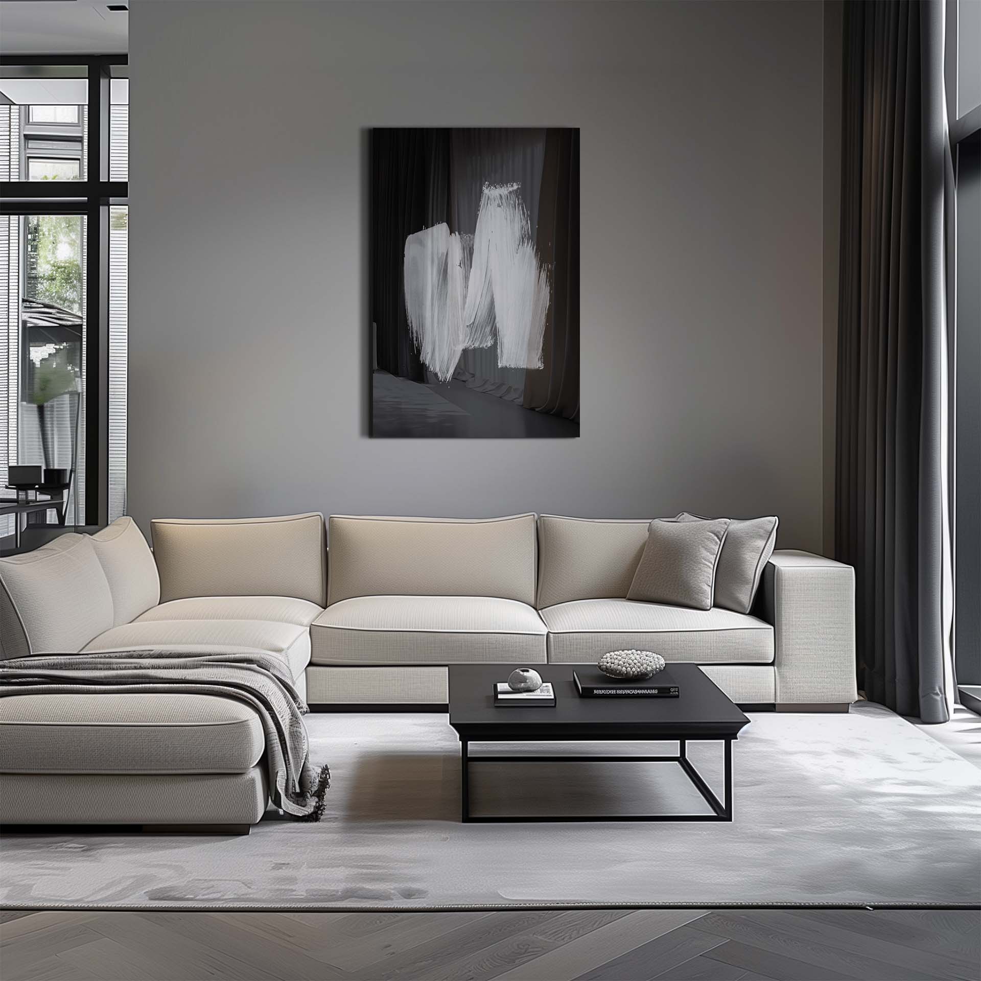 The "Abstract I" painting falls under the Abstract collection. You can see here a white paint stripe on a black... Read more