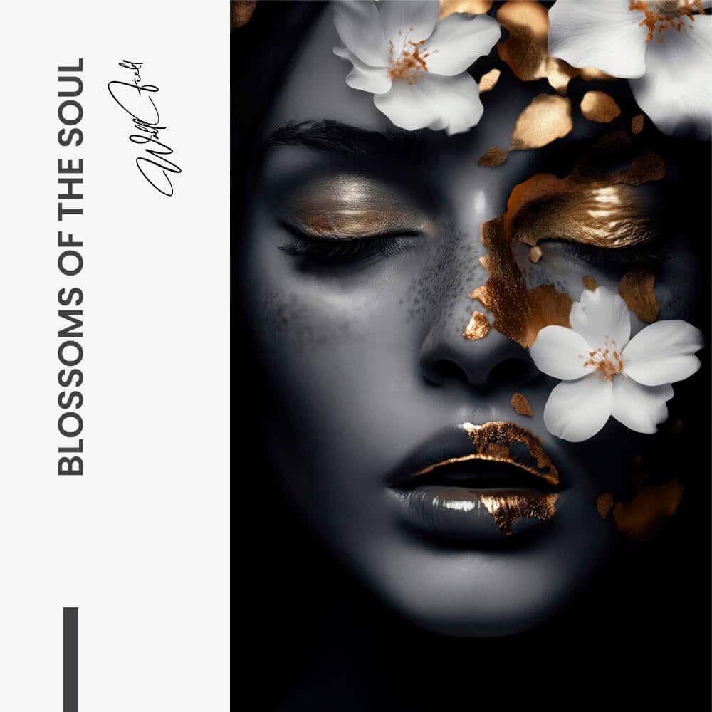 The delicate petals in “Blossoms of the Soul” blend with gold accents on a dramatic background. The contrast between the... Read more