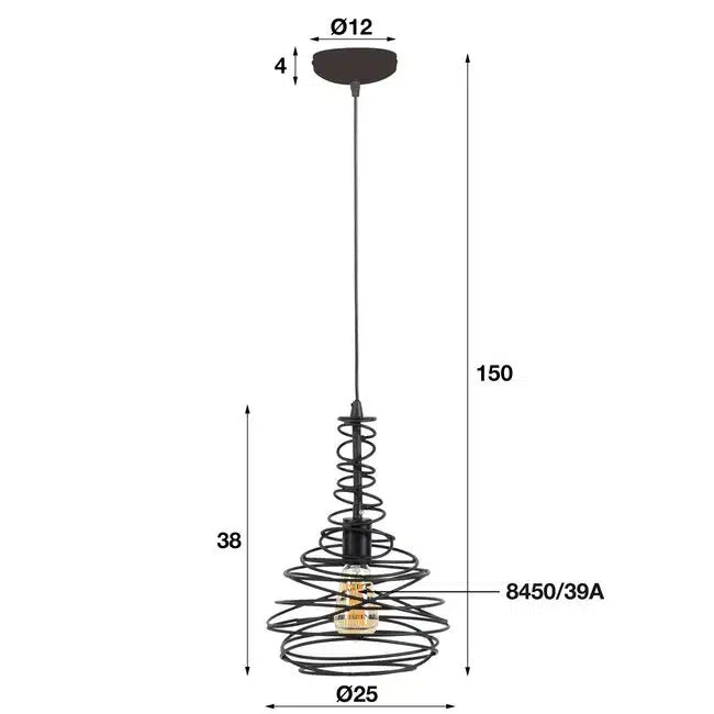 Pendant Lamp 1x Ø25 kegel spinn / Black