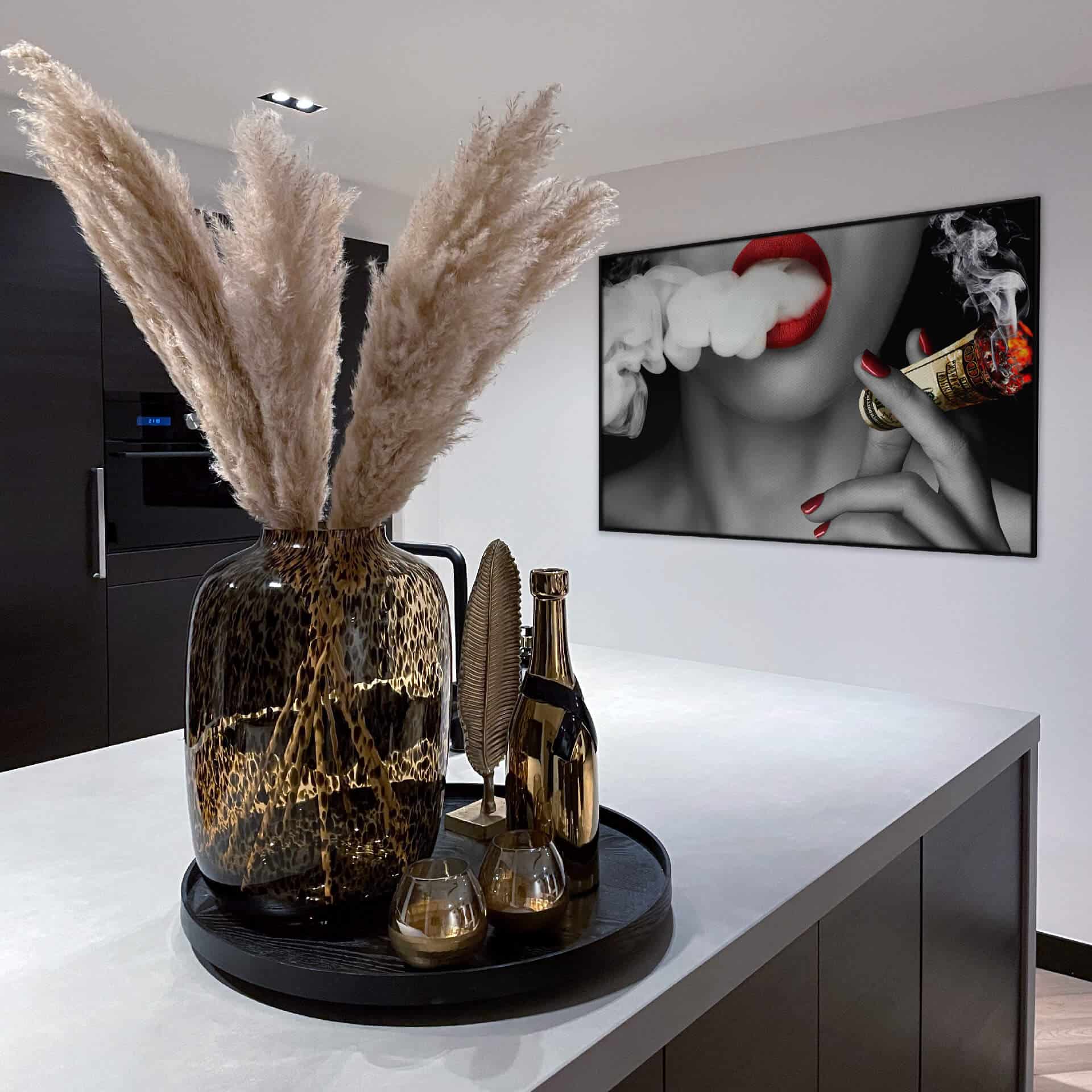 The 'Million Dollars Smoke' design is a real eye-catcher for your interior! The red accents in the black and white... Read more