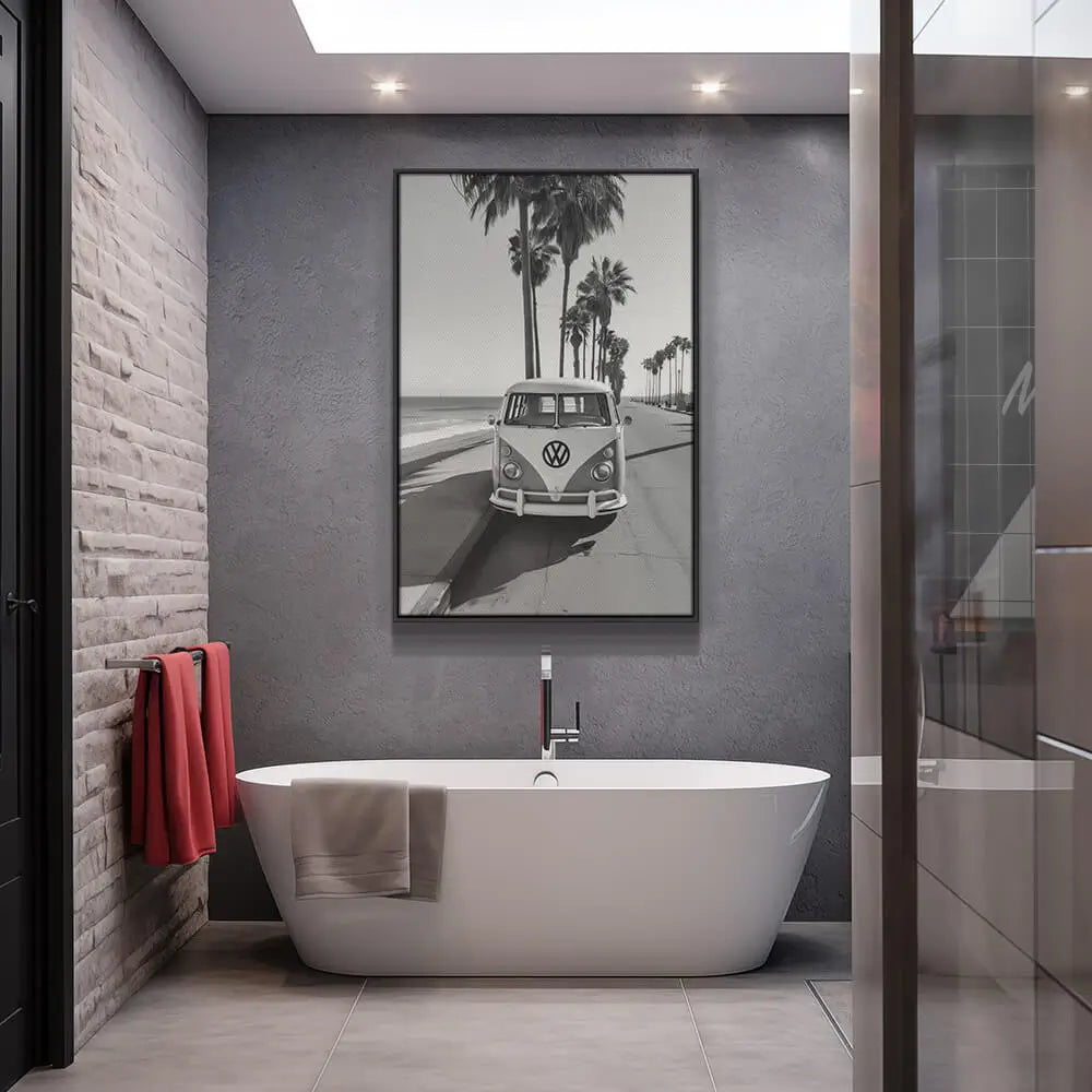 The nostalgic charm of “Retro Routes I” evokes a sense of freedom. The classic van and palm-lined road create an... Read more