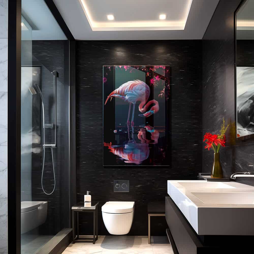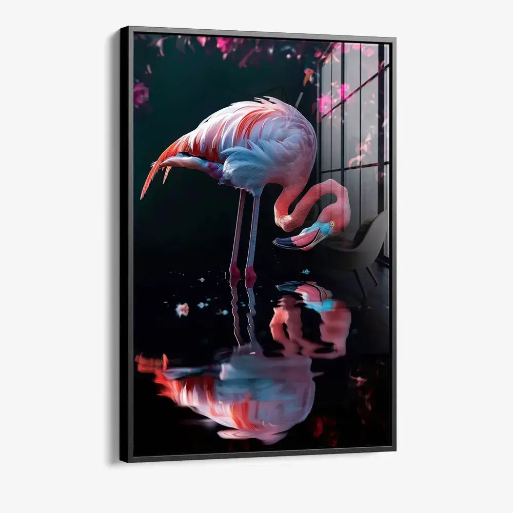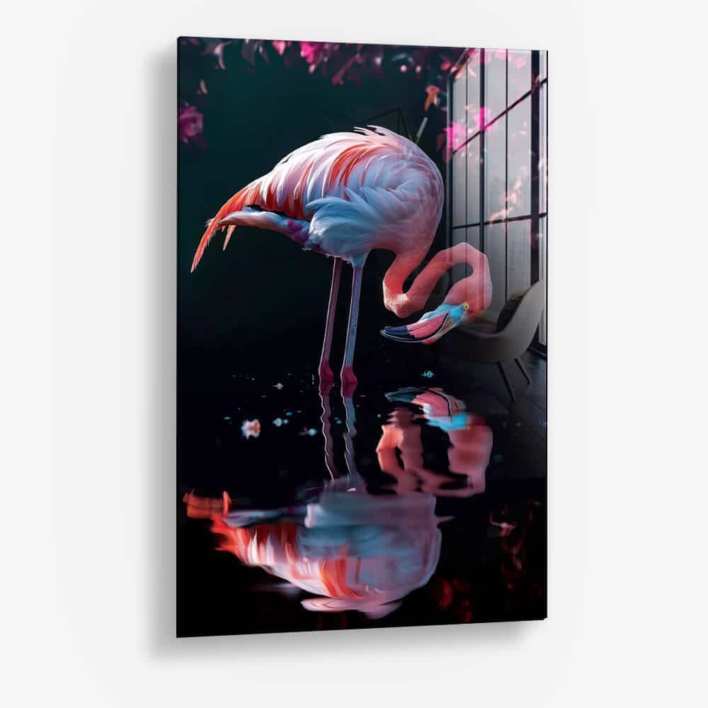 “Rose Mirage” is a poetic depiction of a flamingo in soft pink hues. The water surface reflects elegance and sophistication.... Read more