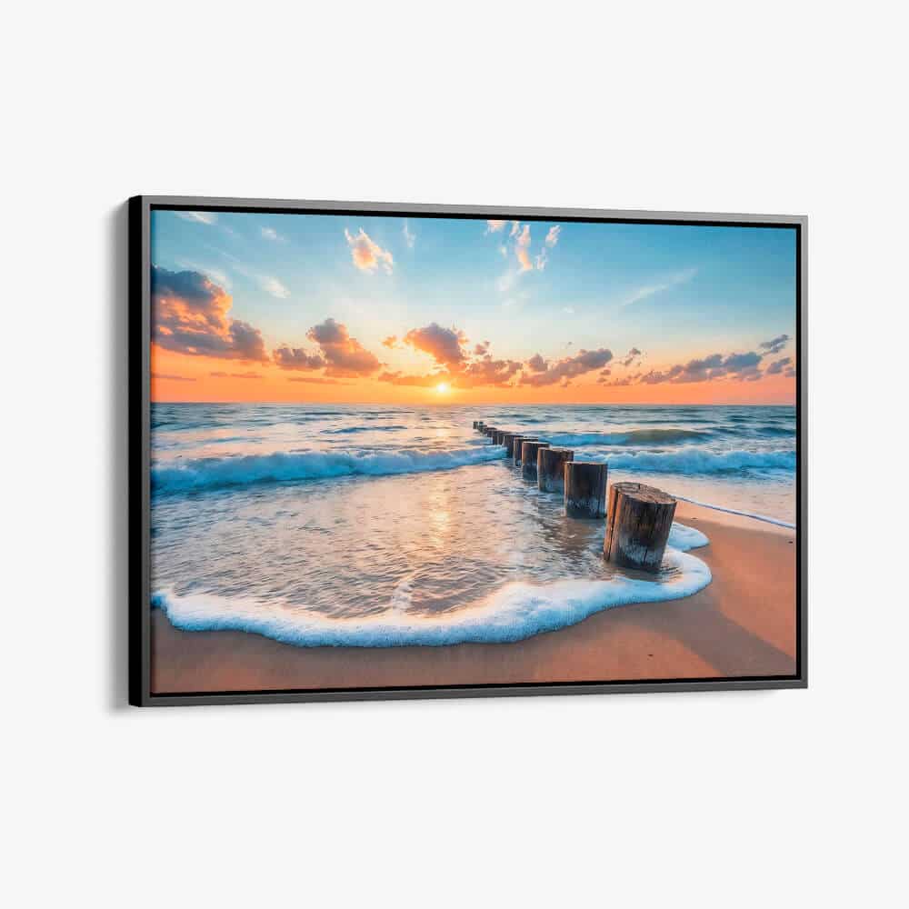 The vibrant colors of the setting sun in “Sunset Serenade” spread warmth and serenity. The gentle waves that hug the... Read more